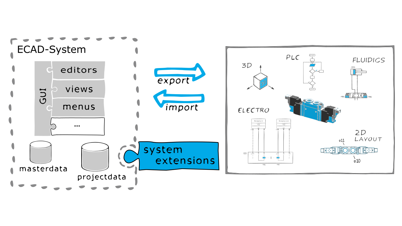 Darüber hinaus gehen unsere Bemühungen bei der Erstellung digitaler Daten weit über die Erfüllung vorgegebener Standards wie dem "EPLAN Data Standard" hinaus. Uns ist es besonders wichtig, alle ECAD-Disziplinen wie Elektro, Pneumatik, Hydraulik, Kühlung, Schmierung, 2D- und 3D-Schaltschrankaufbau in einem umfassenden ECAD-Modell sinnvoll und durchgängig zu berücksichtigen.